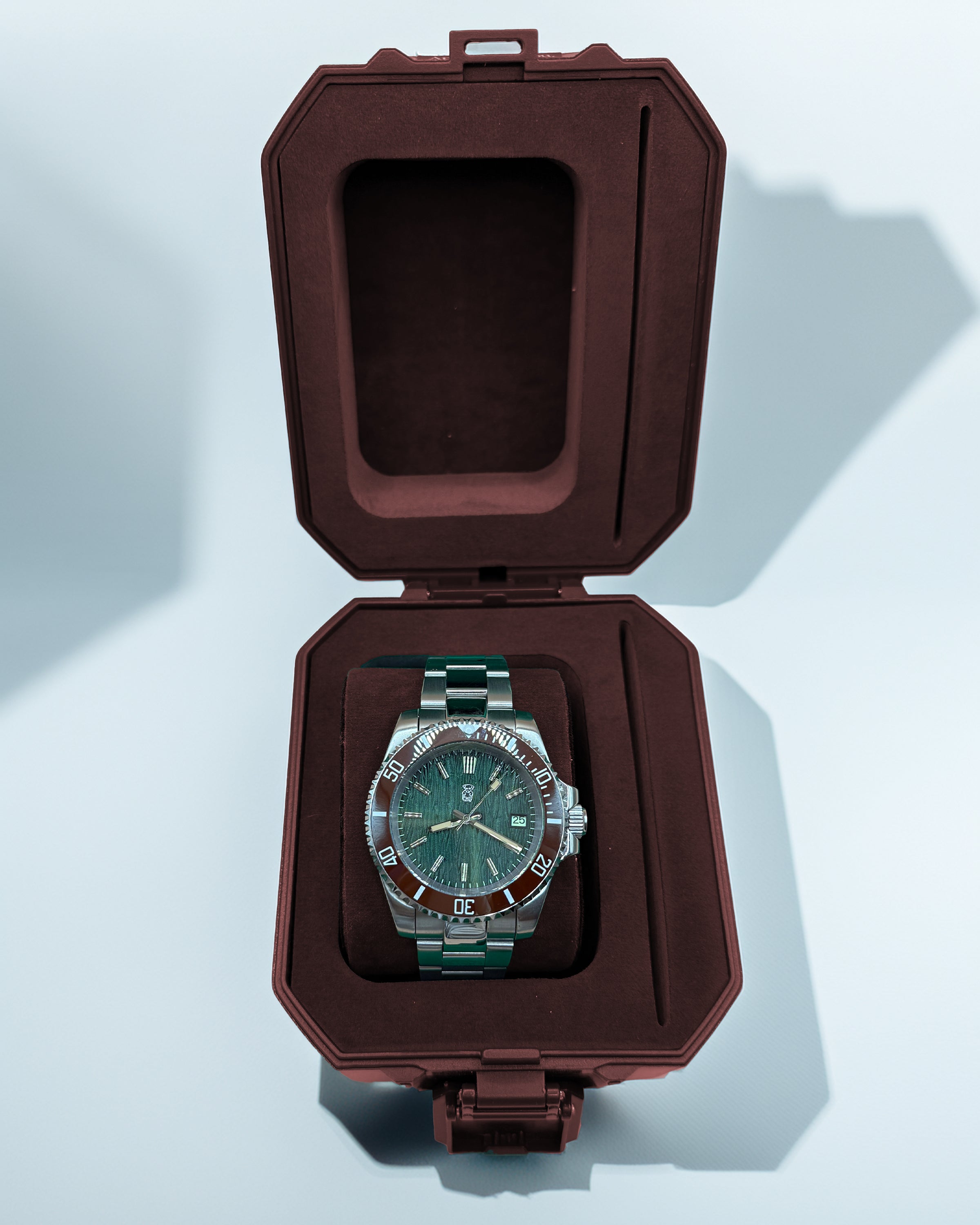 The Tree-Dweller is a celebration of rugged elegance—built for the wild but refined for everyday wear. Its wood-textured dial and deep red-brown bezel evoke the resilience of old-growth forests while keeping you grounded in time and style.